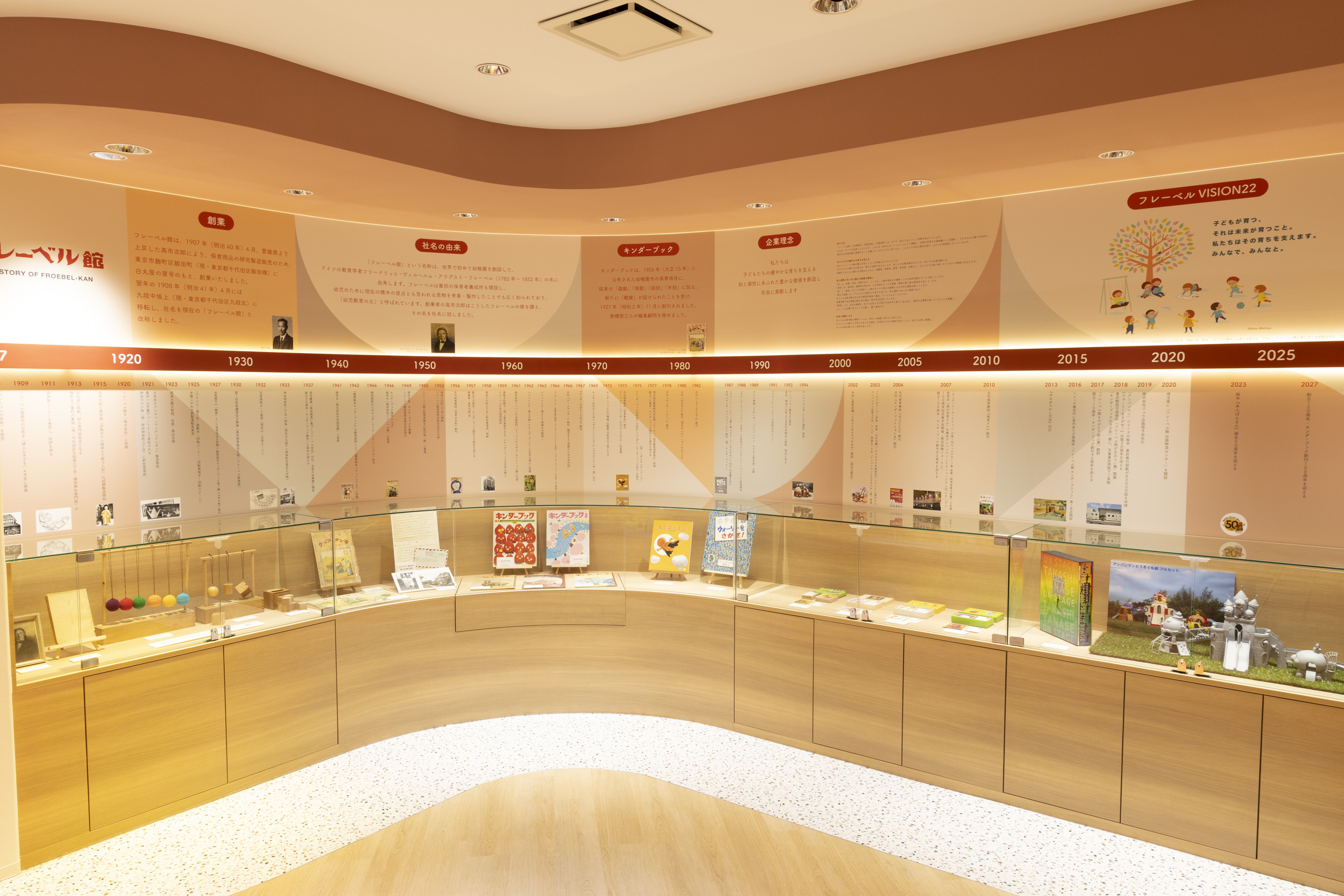 また、沿革のコーナーでは、過去のキンダーブックや貴重な写真、商品などを展示。フレーベル館の「昔」をご紹介しています。